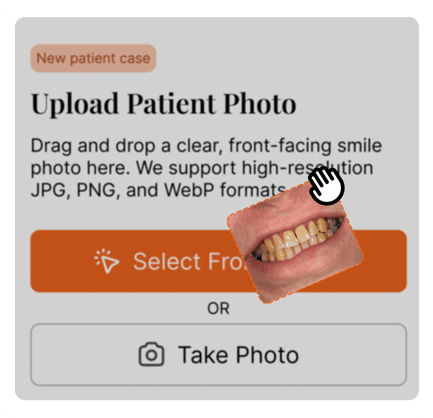 Capture or upload the patient's smile directly in the app. No extra tools needed or studio lighting required. A single front-facing image is all you need.